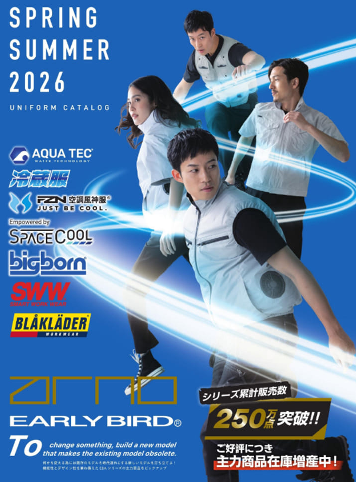 ビッグボーンの商品は、シックで落ち着いたウェアから、アグレッシブで挑戦的なデザインの物までトレンドカンのある商品が特徴で、一般的な作業服から空調服、安全靴まであらゆる種類の作業服を扱っています。